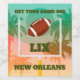 Football game day personalised Wine Bottle Labels featuring palm trees and a football sailing through the uprights. Perfect to give to your party host or to add to bottles served at your party for the big game February 13, 2022 in Los Angeles. MATCHING items in our store.