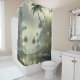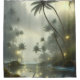 Coastal beach home shower curtain palm trees and ocean with sparkling lights.