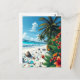 Say hi and keep in touch with friends of family members with this pretty tropical beach scene with a blue ocean shore with palm trees and colourful tropical flowers. A great way to keep in touch if you are vacation!