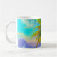 This mug is perfect for those who love to enjoy a hot drink while dreaming of their next beach vacation, or for those who simply appreciate the beauty of nature. The two prominent palm trees in the front right of the design add a touch of elegance and sophistication, making this mug an eye-catching addition to any kitchen or office.