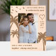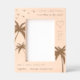 Romantic photo frame for your beach wedding photo with palm trees, soaring birds, your wedding date beneath a heart inspired by the shape of a heart drawn in sand, and a romantic quote along with your names. The perfect way to display your romantic wedding photo from your beach wedding or destination wedding with your custom text and a tropical design etched into the wood.