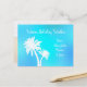 Warm Christmas wishes postcard greeting to customise with greeting and signature on the front. Bright aqua blue graphic design with palm trees image. Use to send greetings from a tropical location and warm climate. This card works as a corporate holiday card as well. On the back, an address template is provided over a beach sand image, or delete the sample text to order blank.