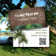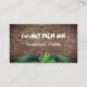 Tropical themed, palm trees business cards with QR code template. Double sided cards have palm tree bark background on the front with two lines of text. Use for business name, or personal name with occupation. On the back, add more text and QR code, or logo, or small image / photo. Two palm tree images decorate the white background. Fonts are modern and playful, or change them as you choose.