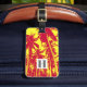 Palm Tree Design with Monogram. Red and yellow. Pattern of leaves, tropical Palm trees.