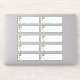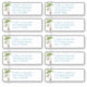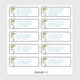 Palm trees mailing labels with individual text templates. Add a different name and address to each label and use to mail wedding or event invitations. White labels have tropical blue, printed text and will accommodate up to four lines. Two green palm trees decorate the left edge and text aligns left next to the trees.