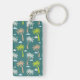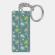 A mid century, retro pattern of white, green and light brown palm trees and white and blue clouds, against a darker green background.