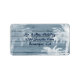 This beach address label design features a palm tree overlay on a rustic wooden background in shades of blue and white.