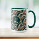 This Polynesian inspired mug features a pattern of palm trees and waves in green -- with a hint of teal, tan, brown, and creamy off-white. Your monogram initials appear in a dark green circle, along with palm trees, on each side of the mug. If you or your recipient loves the beach, this mug would be a great way to start your morning java or relax with afternoon teaa. Make sure to type your or your recipient's initials in the Personalise section.