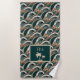 Palm Trees Polynesian Waves Vintage Beach Monogram Towel