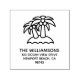 Select any colour for this self-inking rubber stamp featuring palm trees, your name and address in a simple, modern font.