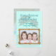 Tropical palm trees flat Christmas card with custom text and rope frame. Light blue and teal green colours with shadow text for the two lines of greeting, "Merry Christmas & Happy New Year" can be changed. Add a signature and upload a horizontal photo of the kids, family, pet, etc. within a knotted rope frame. Reverse also contains a beach palm tree image.