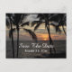 This romantic design features a photo of a sunset at the beach with silhouettes of palm trees. Personalise this postcard with the details of your upcoming wedding. These are great for beach, ocean, seaside, coastal, tropical or destination weddings.