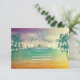 Please Respond wedding rsvp cards with stylish typography, palms and string of lights. Cute and elegant sunset in the sea colours.