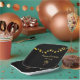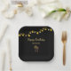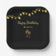 Tropical Beach Birthday party paper plate, with an elegant palm trees string lights design on a black background. With customisable typography lettering, you add your own information. A glamourous addition to your beach inspired dinner table.