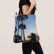 Reusable bag featuring a silhouette of palm trees during sunrise in Destin, Florida, United States along a sidewalk and gazebo is at Four Prong Lake. Looking for more products? Visit my store: http://www.zazzle.com/timelessmomentsphtgy