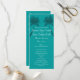 Palm Trees Teal Blue Turquoise Beach Vertical Wedding Programs with two palm trees at the top. These are perfect for beach wedding programs or destination wedding programs. This is a 4" x 9" vertical two sided wedding program. Just use the template fields to add your own wedding ceremony details or use the "Customise It" button to add or delete lines of text or move things around.