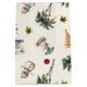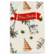 Beach Christmas medium size gift bag with custom greeting text on the front. Ecru / off-white colour bag, with a pattern of palm trees and beach sand Christmas trees and snowmen. Each sheet has a different size pattern, and one sheet has a red banner to hold your choice of greeting. The sample wording is, "Seas and Greetings", or change it to Merry Christmas, Seasons Greetings, or Happy Holidays. The design transfers well to the smaller gift bag as well.