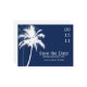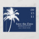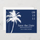 Beautiful palm trees wedding save the date postcards.