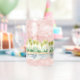 Beautiful watercolor palm trees line the beach of this unique glass featuring the couple's name and wedding date.