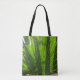 This Tote Bag features an original photograph by ZoeSPEAK, the shadows of a saw palmetto frond over a background of a palmetto frond. The shadows form soft stripes across the detailed green bands of this tropical palm, with fronds shaped like big fans.