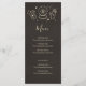 This menu would be perfect for a Halloween party or any spooky event. The design features an illustration of a palm, a crystal ball and a set of tarot cards on a black background surrounded by celestial moons and stars.