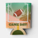 Football game day personalised can coolers for beer and soda cans and bottles featuring palm trees and a football sailing through the uprights.
