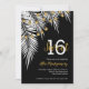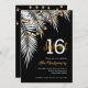 White palm tree fronds with strands of gold lights on a black background, these sweet 16 birthday party invitations are fun for your special occasion. MATCHING items in our collection.