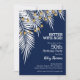 Birthday party invitations for any age feature strings of lights on white palm fronds on a navy blue background (You can change to any colour background to ANY COLOR! MATCHING items in our store.