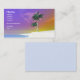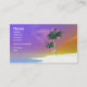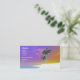 Colourful tropical business card with my digital artwork of palm trees on a white beach.