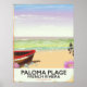 Paloma Plage, French Riviera travel poster of a old wooden fishing boat on the sandy france beach.