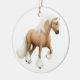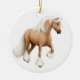 Great gift idea for horse lovers! Original fine art design of a palomino Gypsy Cob horse by illustrator Carolyn McFann of Two Purring Cats Studio on quality holiday ornaments for equine fans.