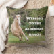 Leave one or several of these comfy pillows on your guest bed, guest sofa or recliner to welcome visitors to your home. A Palomino horse graces the front of the pillow and the welcome text can be customised to suit your preferences. The back is a neutral brown but can be changed as well.