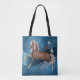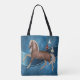 Beautiful palomino horse on a blue background printed on a tote bag.