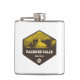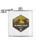The flask itself is fine. It’s a cheap flask, obviously bought in bulk, however am prepared to overlook that. Given that it is a personalized item, I would have liked to have seen gift boxing instead of the generic packaging. Terrible printing, and/or quality. It’s a cheap, tacky vinyl. It is not cut straight and is also applied in a way that it is overhanging the bottom, causing the glue to catch on items and it will eventually roll and tear, damaging the wrap.