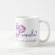 Hand drawn letter P name and meaning mug. Pretty heart and flower capital P doodled typographic design featuring hearts and flowers and the words Pamela All honey, sweet, rich & delightful in pink and purple. © Unique art and design by Sarah Trett. www.sarahtrett.com for www.mylittleeden.com on zazzle