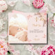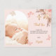 A modern and elegant baptism thank you card. A blush background decorated with blush florals, pampas grass and butterflies. Personalise and add your photo of the child inside the arch frame, thank you note and name.