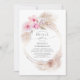 Pink orchids, blush roses and pampas grass tropical bridal shower invitations