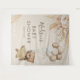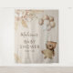 Bohemian Bear baby shower tapestry featuring a light brown background, a vintage watercolor baby bear, balloons, rustic boho pampas grass & florals, plus a modern text template that is easy to personalise.