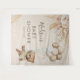 Bohemian Bear baby shower tapestry featuring a light brown background, a vintage watercolor boy baby bear, balloons, rustic boho pampas grass & florals, plus a modern text template that is easy to personalise.