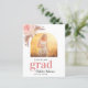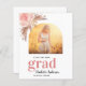 Decorated with pampas grass and blush pink florals. Personalise and add your own photo of the graduate. Add year and school name. With the word: Grad written with large letters.