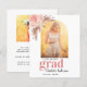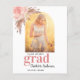 White background decorated with pampas grass and blush pink florals. Personalise and add your own photo of the graduate. Add year and school name. With the word: Grad written with large letters.