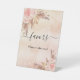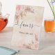 A rustic blush pink, rose gold gradient background. Decorated with rose gold and pink florals, roses and pampas grass. With the text: Favours, please take one!