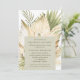 Boho desert bouquet post-wedding dinner party invitation with hand-painted watercolor palms, pampas grass, white orchids and dried leaves in natural earth tones on white background. Easily customise the background and foreground colours, font style, layout, and add your favourite wedding photo on the back. Coordinating invitations and accessories available in store.