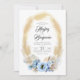 Dried palm leaves, pampas grass and dusty blue flowers wedding invitation.