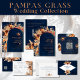 Pampas Grass Navy Blue Save The Date QR Code Invitation