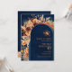 Stunning, modern QR code save the date wedding invitation featuring boho pampas grass floral elements in terracotta, rustic autumn cottage hues with arch, against a navy blue background. Add the URL of your wedding website on the reverse of the card and the QR code will be updated, or delete if not required. Click on personalize/customize further to include your own details.