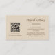 This modern business card in cream beige colours features a photo realistic AI creation of pampas grass and a custom name in an elegant hand written script. Modern floral boho design. Add your website url address to create a QR Code and personalise with your contact information and social media information. Perfect for make up artists, hair stylists, spa and beauty, interior designers, wedding-and event planner.