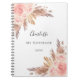 A white background. Decorated with rose gold, pink florals, pampas grass. Personalise and add a name, title and year. The name is written with a modern hand lettered style script.