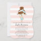 Cute spa day themed bridal shower invitations are perfect for a Let's Pamper the Bride bridal shower. A cute brunette lady wears a something blue robe with a white heart and a blue and white polka dot bow headband. A blush pink and white striped background on the front and a pale cucumber mint green and white polka dot heart pattern on the back. These spa themed invitations would not be complete without this cutie's red pedicure, white face mask and two cucumber slices for the blushing bride to be to feel relaxed, refreshed and pretty! Artwork © Chrissy H. Studios, LLC. All rights reserved.