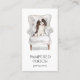 An cute combination business card and appointment reminder pet spa card featuring a watercolor puppy dog sitting in a chair. A light hearted illustrative style for a pet grooming business.